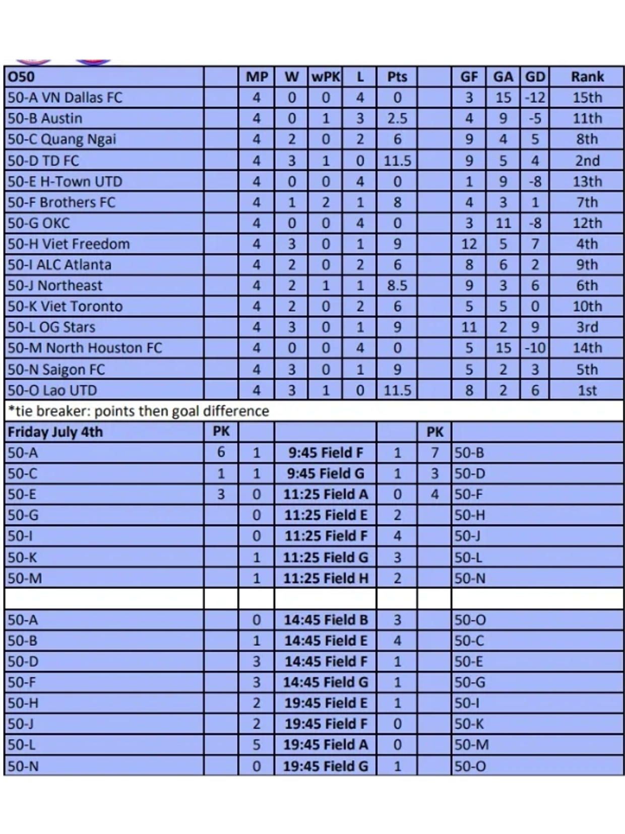 Dallas - plano Asian Independence Cup July 4-6, 2025